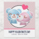 Personalized wine labels. Designed with a cute cartoon image of a bear couple, the she bear is pastel pink with a little bow and she is kissing the cheek of a blue bear who looks positively delighted. A little pink heart is floating above their heads. Very cute and kawaii. Background pattern is a muted pink colour with white polka dots.