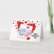 A Valentine's Day greeting card with a cute cartoon image of a bear pair, one bear is pastel pink with a little bow and she is kissing the cheek of a blue bear who looks positively delighted. Very cute and kawaii. Lots of red hearts floating all around. Personalize your message on the inside of the card.