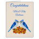 This awesome Wedding congratulations card features a pair of cute Blue Jays. A bird from the crow family with beautiful bright blue feathers and a crest on the head. The beak is black and the belly a shade of blue grey. The birds are facing each other and almost kissing. Between them is a pile of fall Oak leaves and a single acorn, a symbol of their love that also reflects the collecting of acorns undertaken by these birds during fall. A lovely design for celebrating a Wedding, especially during fall or Autumn. There is custom text on the front and inside so you can personalize this card.