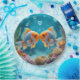 In a mesmerizing underwater world, two goldfish share a tender kiss, surrounded by whimsical heart-shaped bubbles drifting gracefully to the surface.