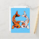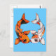 Postcard features illustration of two kissing koi fish in bold shades of orange, black, white, and pool blue. Customize with your own text, change the background colour, or leave as-is. (just click the 'customize' button under the main image to do so)
