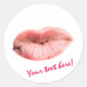 Drawing of female kissing lips. Round sticker. Customizable. You can change the image and you can change or delete the template text of dark pink colour. Have fun!