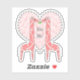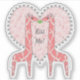 A pair of pink and white giraffes seem to be kissing while having a green snack. The light pink heart background is covered with x's and o's which is symbolic of hugs and kisses. The current text, "Kiss Me!" can be changed to your own words to personalize the design.