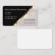 Classy kitchen and bath remodeling business card template in a luxury design including gold coloured geometric divider line that organizes your layout and graphic design image of kitchen cabinets lightly printed on the background so your text stands out. Designed for a home remodeling service.