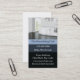 Trendy modern kitchen and bath home remodeling business cards in a double side vertical format you can customize online. Created with a graphic image of a kitchen in the background on high quality UV coated business cards stock.