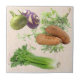 Brighten your kitchen with these charming ceramic tiles decorated with images of freshly grown vegetables. Gues Who has created nine patterns, each with a different set of home grown garden vegetables. Each style has an herb/beige background. The 4.25 x 4.25 size makes these tiles perfect to use as a spoon holder for a ladle, baster or spoon as you are preparing your family's meal. Choose all nine tiles and use them as a colourful border for your kitchen back-splash or, choose a few and use them as a collage to brighten your kitchen wall.