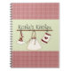 Write down all your favourite recipes in your very own personalized notebook. Design features a lovely red country plaid kitchen theme. Use the text template to insert any wording you desire. Notebook pictures a country like red plaid top and bottom with a light sage green strip across the centre and a design of a heart themed oven mitt, apron and baking hat hanging from hooks of a shelf. Great house warming gift.