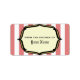 A vintage circus inspired Kitchen label featuring a background of faded red and white stripes. Customizable text reads "From The Kitchen Of" Personalize with your name. Look for matching invitations at Jill's Paperie.