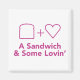 Your refrigerator is bored and lonely. Show it a little love with this kitchen magnet featuring the clean, cool A Sandwich and Some Lovin' Logo.