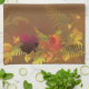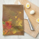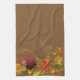 Kitchen towel shown in a Brown colour with a art print of autumn fall leaves.