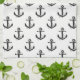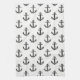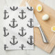Kitchen towel is shown in a black and white nautical anchors print.