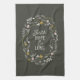 Trendy kitchen towel with the popular christian words: Faith, hope & love. Make a statement in your home with this beautiful kitchen towel! Designed with modern calligraphy and hand lettering, centred in a wreath of flowers. Great as a christian wedding or housewarming gift!