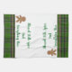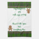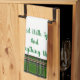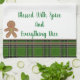 This kitchen towel is shown in green plaid with tan and brown accent stripes. Words of "Blessed with spice and everything nice" shown in Christmas green. Shown on a white towel, with Christmas gingerbread men accents.