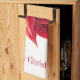 Holiday kitchen towel shown in white with a festive Christmas red poinsettia design.
