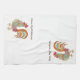 Kitchen towel shown in white with a fanciful rooster chicken art print design. Text on towel reads "Bless My Chickens". Multi Colour.