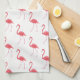 Kitchen towel is shown in white with a cute pink flamingo birds.
