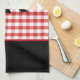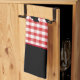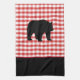 This kitchen towel is shown in a cute red plaid print design with a bear print.