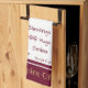 Cette serviette de cuisine est montrée en rouge et blanc bordeaux avec accent chameau et rayures d'accent. Mots de "Partage, bénédictions, bonne nourriture, gentillesse, embrassades et baisers, générosité, sourires, rire, amitié, bonnes conversations", et, au bas de la serviette "le pépite de la vie". Sur un arrière - plan blanc.