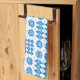 A chic Tea Towel or Kitchen Towel, with a pattern of traditional Welsh Tapestry motifs in Bright Blue on a White background.