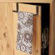 Kitchen towel with stylish folk white, brown geometric ornament.
