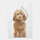 This kitchen towel features a hand-painted watercolour painting of a Golden Honey Cockapoo. Inspired by a love of dogs, this was painted with high-quality watercolour paints and carefully scanned to preserve the details of the paint and paper. You can personalise the kitchen towel with the name of your own doggie, or that of a friend for a lovely gift.