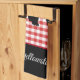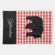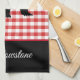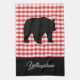 This kitchen towel is shown in a cute red plaid print design with a Yellowstone Bear print.