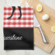 This kitchen towel is shown in a cute red plaid print design with a Yellowstone Elk print.