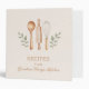 Bring warmth and love into the kitchen with this charming recipe binder featuring a delicate illustration of wooden cooking utensils accented by leafy sprigs.