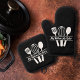 An Oven Mitt & Pot Holder Set with kitchen utensils monogram including whisk and spatula and a customizable text inside. Perfect for Mother's Day, to make a gift to your mom, a cooking or pastry chef or for newlyweds!