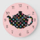 Kitchen wall clocks with cute image of a teapot with mutli-colour polka dots on the clock face in this scenic wall decor clock design for your kitchen, bathroom, or any room in your house you want to add some stylish decoration.
