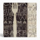© Pela Studio / Wild Apple. A black and white image of a fork, spoon and knife. The background has words written on it.