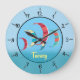 Blue kite surfing clock with customisable text.
