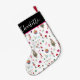 Deck the halls with a little extra kitsch! This festive Christmas stocking features a playful retro pattern of watercolor disco balls, nutcrackers, mushrooms, candy stripes, ornaments, and holiday trees. Bright, colourful, and full of vintage charm, it’s the perfect holiday accent for those who love a quirky twist on tradition. Personalize with a name for a one-of-a-kind stocking that’s fabulous, fun, and ready to hang by the fireplace.
