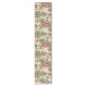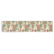 This whimsical Santa table runner exudes a playful nostalgia, transporting you to a bygone era of holiday cheer. The background is a warm, creamy beige reminiscent of vintage parchment, allowing the vibrant illustrations to pop with festive merriment.
