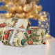This whimsical Santa tissue paper exudes a playful nostalgia, transporting you to a bygone era of holiday cheer. The background is a warm, creamy beige reminiscent of vintage parchment, allowing the vibrant illustrations to pop with festive merriment.