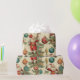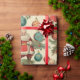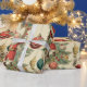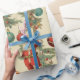 This whimsical Santa wrapping paper exudes a playful nostalgia, transporting you to a bygone era of holiday cheer. The background is a warm, creamy beige reminiscent of vintage parchment, allowing the vibrant illustrations to pop with festive merriment.
