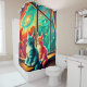 This cute shower curtain has two little kittens looking at the galaxy out the window.