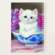 Planificateur avec un chaton blanc sucré ! Ce chat moelleux pose dans un bol bleu décoré de fleurs roses. Un cadeau merveilleux pour les amoureux de les chats et les amateurs d'art victorien !