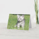 A lovely Silver spotted British Shorthair kitten sitting in the grass on this unique birthday greeting card, Original photo and design by mmersdesign.