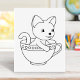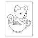 Kitten in a Cup - Cat in a Teacup Colouring Page Rubber Stamp