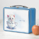 Beautiful Kitten in Cup Blue Flowers Metal Lunch Box