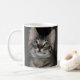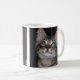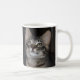 This mug features our adorable grey striped kitten, Caspian. Caspian started her little life as a feral kitten who was abandoned in our backyard by her mother. She is a treasured member of our family. With Caspian's long whiskers, white markings around her eyes, long tufts in her ears, black fur necklace and adorable face, this mug is perfect for every cat lover.