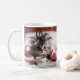Kitten just waking up in need of some coffee. coffee mug
