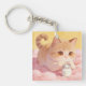 Instant happiness in your pocket ♡ This precious keychain features an ultra-fluffy orange tabby kitten with enormous sparkling eyes, happily dipping its paw into a tiny jar of fresh milk while perched on soft pink clouds. The warm yellow background and gentle pastel tones make this little guy look like he stepped straight out of a cozy anime dream.
