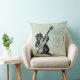 Kitten Playing Violin Teal Music Cat Illustration Throw Pillow