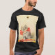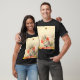T-Shirt featuring Meta Plückebaum’s artwork Kitten with a Red Ribbon (b. 1876). A grey kitten with dark stripes is beautifully adorned with a red ribbon. The kitten plays with a bee. Yellow flowers decorate the foreground. A wonderful gift for cat lovers and German art enthusiasts!