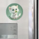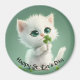 Adorable picture of a white kitten holding a shamrock, is featured on this round magnet for St. Patrick's Day. With message, "Happy St. Pat's Day", makes this magnet a great decoration or give as a gift for the Irish holiday!