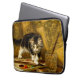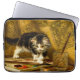 Laptop Sleeve featuring Henriëtte Ronner-Knip’s oil painting The Young Artist (1821-1909). A black and white kitten plays with a paint set and two brushes. An adorable gift for cat lovers and Romanticism enthusiasts.