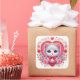 Kitten with Red Bow with Romantic Floral Hearts Square Sticker