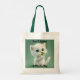 Adorable picture of a white kitten holding a shamrock, is featured on both sides of this tote bag for St. Patrick's Day. With message on each side of tote, "Have A Purrfect St. Patrick's Day", makes this tote a great gift for the Irish holiday. Or use yourself for shopping, work, school and more!